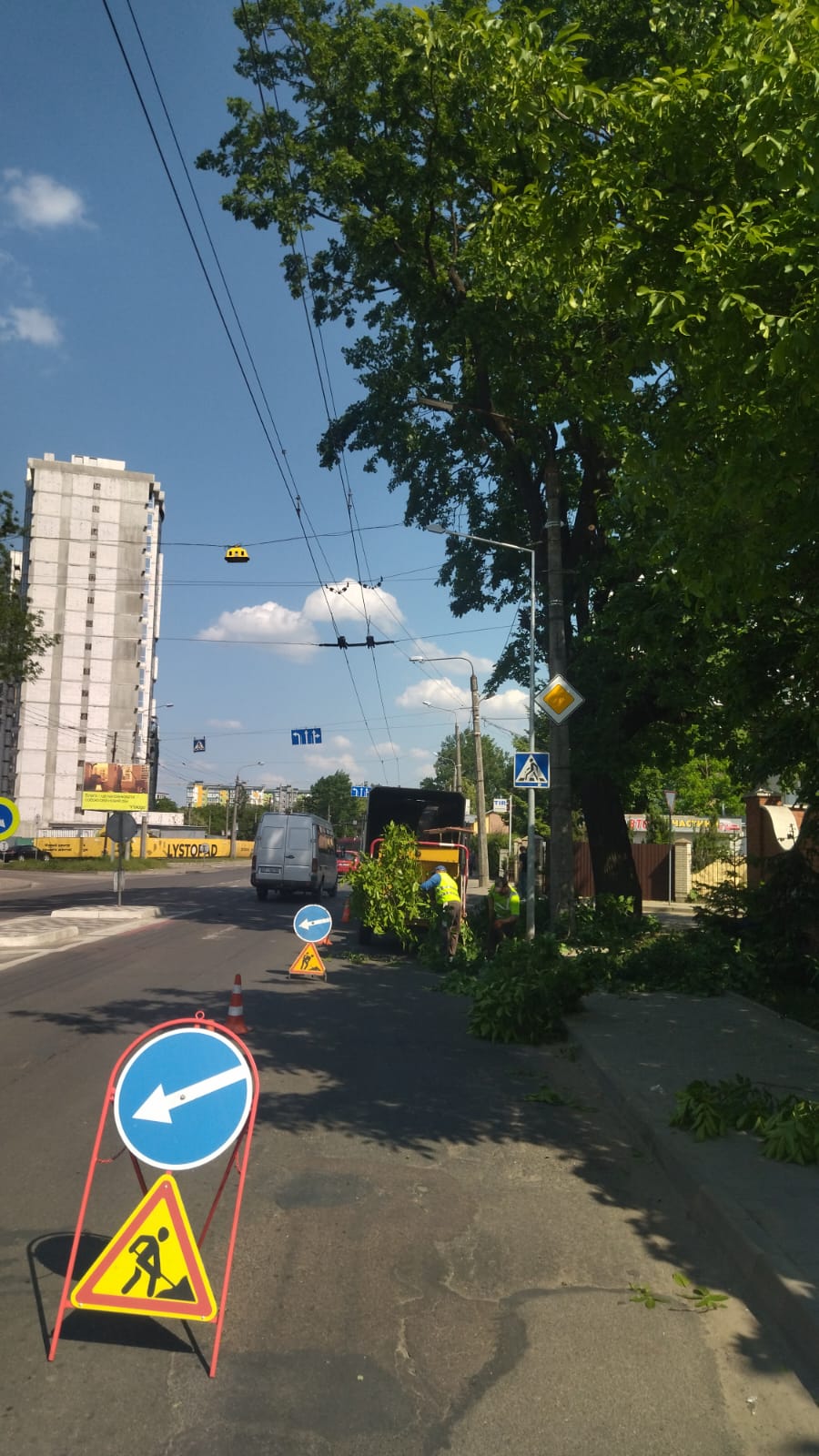 31.05.2023 р. Вздовж вул.Незалежності проведено роботи з обрізки гілок дерев над тролейбусними лініями, світлофорами та дорожніми знаками.